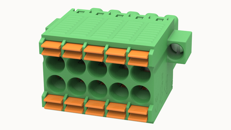 Pluggable Terminal Blocksnominal current9.5A.Rated voltage(Ⅱ/2):320V,pitch:3.5mm,Color:green,Contact surface:Tin